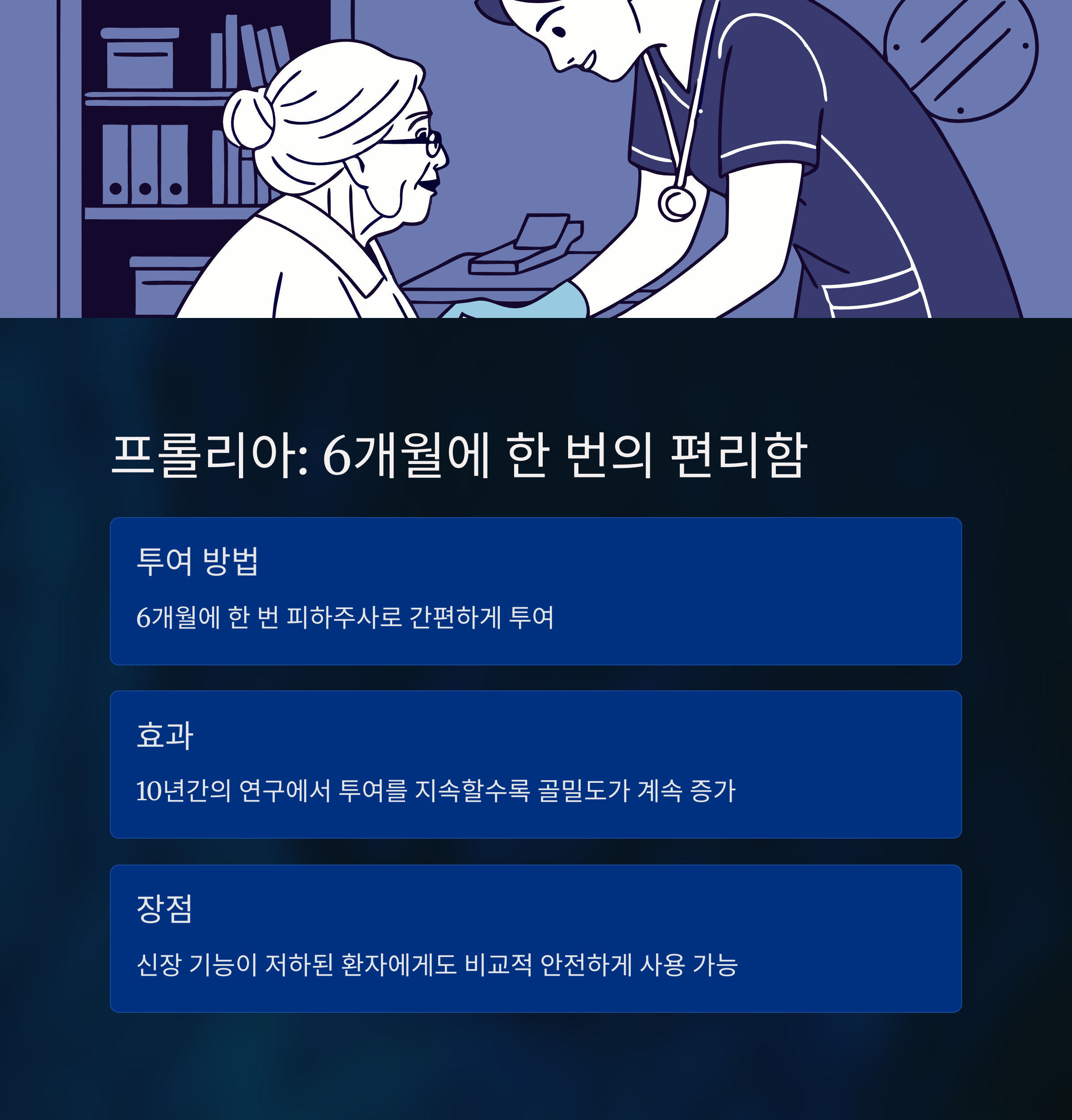 - 장기 치료가 필요한 경우: 프롤리아는 장기 사용 데이터가 풍부해 안심하고 사용할 수 있습니다.