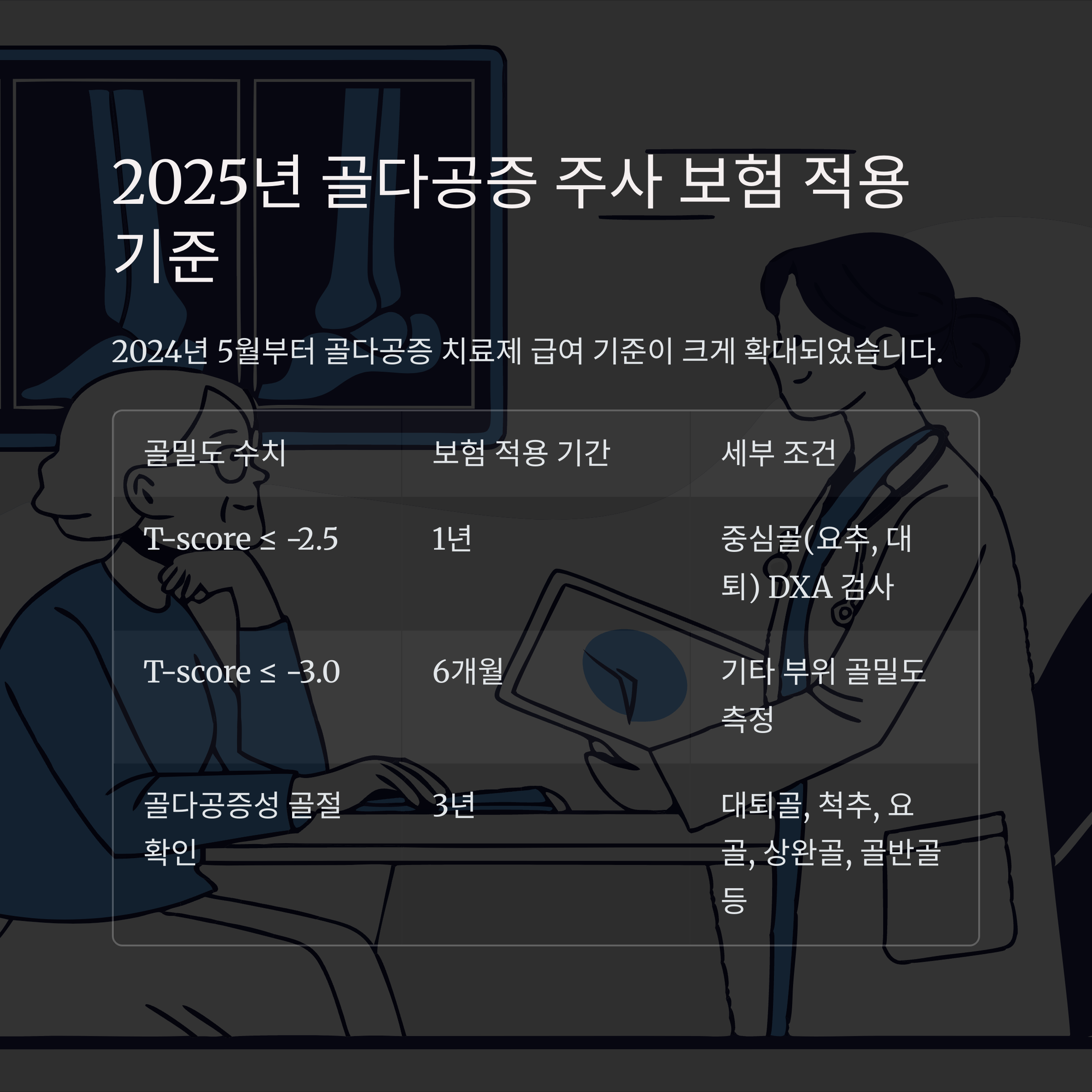 2025년 골다공증 주사 치료 방법 보험 적용 기준